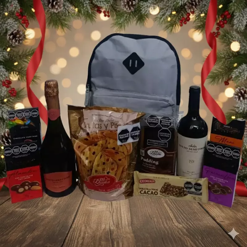 La Mochila Navideña Grupo TAM es el regalo perfecto para esta temporada festiva. Este producto único ofrece una alternativa innovadora a las cajas navideñas tradicionales, ya que incluye una práctica mochila que se puede seguir utilizando luego de disfrutar de sus deliciosos contenidos. Desde vinos selectos como Champagne Nieto Senetiner Extra Brut y Nieto Senetiner Malbec, hasta exquisitos dulces como pan dulce y turrones, esta mochila está repleta de delicias para disfrutar en estas fiestas. Además, con detalles como almendras y pasas de uva cubiertas de chocolate, ¡cada bocado será todo un placer para el paladar! Sorprende a tus empleados y clientes con este regalo único y práctico que les permitirá recordar esta Navidad durante mucho tiempo después. ¡No te pierdas la oportunidad de regalar esta sorprendente Mochila Navideña!